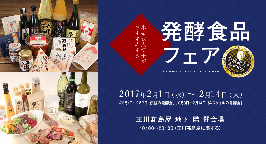 トークショー: 2月13日(月) 小泉武夫博士より、「発酵食品の4つの魅力」と題し、発酵の魅力をユーモラスにお話しいただきます。詳しくはこちら